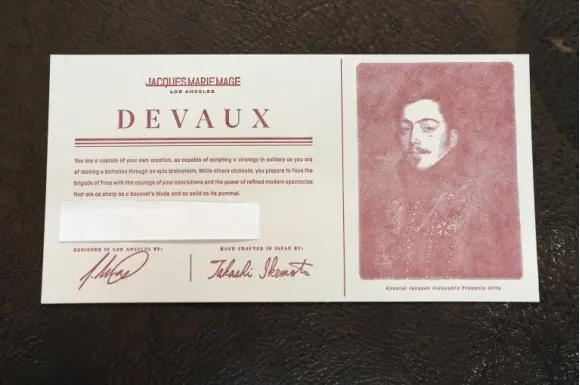 今回お選びいただきました【DEVAUX JMMDU7U 和】は、ジャックマリーマージュが誇るクラシックモダンなデザインと卓越した技術が見事に融合した一本です。アンティークフレームを基調にしながら、現代的なディテールとヴィンテージ感を併せ持つこのフレームは、まさに特別な一本にふさわしい仕上がりとなっています。
