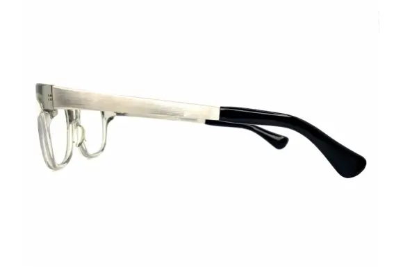 ジャポニスムのJN-536です。クリアグレーの美しい生地を用い、しっかりとした存在感のあるセルフロントに、ワイドなβチタンテンプルを合わせたスクエア型のコンビネーションフレームです。ベースはクラシカルなデザインですが、ジャポニスムらしくモダンに仕上げられています。