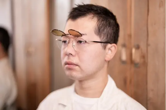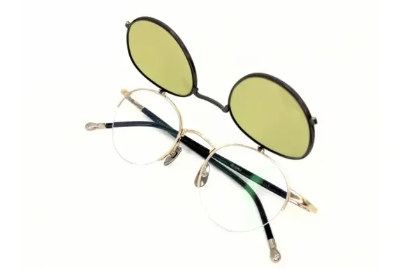 複式跳ね上げフレームとは、2枚のレンズが重なった構造の眼鏡で、外側のレンズ部分を跳ね上げて使い分けができるモデルです。