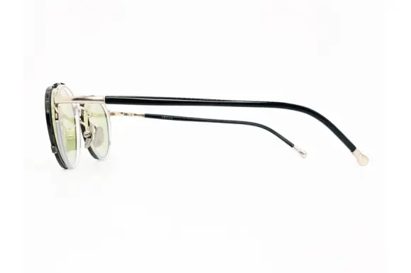 ジャポニスムのsenseシリーズよりJS-S001です。クラシカルなボストン型のフレームで、メタルフロントは、複式の跳ね上げスタイルとなっています。跳ね上げ部分のレンズと、本体部分のレンズ、それぞれにレンズを入れることができるので、用途は広がります。プラスチックテンプルを合わせたコンビネーションフレームで、シンプルでオーセンティックなデザインは、使いやすく飽きのこない一本になると思います。