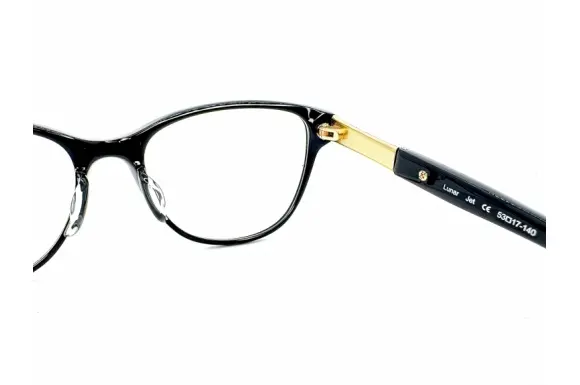 JUDITH LEIBER(ジュディスリーバー)のLunarです。NY発のブランドで、ラグジュアリーなバッグやアイウェアを展開し、世界中のセレブに愛用されています。アニマルものやビジューがびっしりと詰まったようなゴージャスで華やかなアイテムが人気です。こちらも職人によって丁寧に装飾されたメタルパーツとスワロフスキーが豪華で素敵なコンビネーションフレームです。
