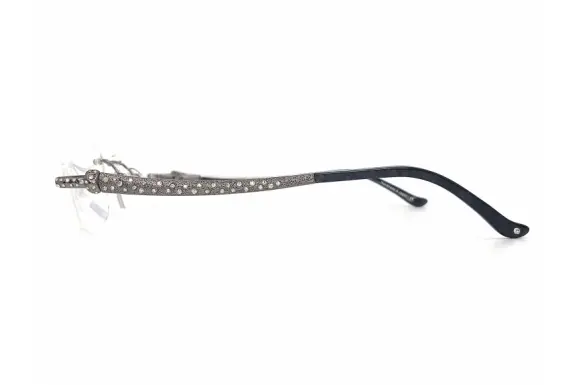 JUDITH LEIBER(ジュディスリーバー)のJL1635です。NY発のブランドで、ラグジュアリーなバッグやアイウェアを展開し、世界中のセレブに愛用されています。アニマルものやビジューがびっしりと詰まったようなゴージャスで華やかなアイテムが人気です。こちらも職人によって丁寧に装飾されたスワロフスキーが豪華で素敵なチタン製のツーポイントフレームです。
