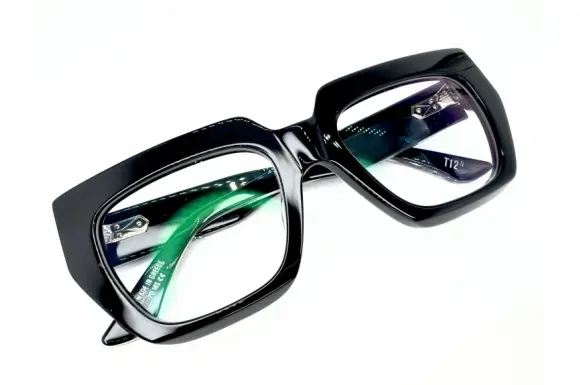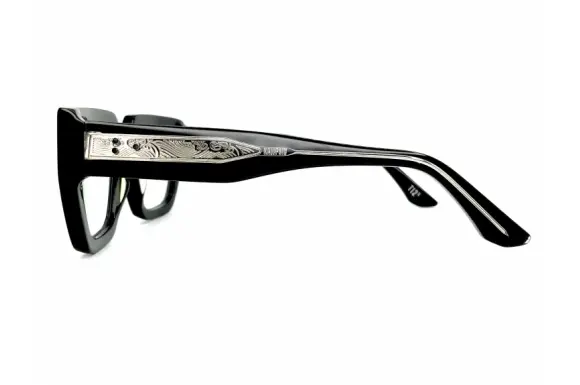 ギリシア、アテネ発、デザイナー、Patricia Revisedによるアイウェアブランド、カロプシア(KALOPSIA REVISIONIST EYEWEAR)。ブランド名は、良い視力または、美しい目を意味する、古代ギリシャ語に由来します。ギリシア、アテネと、フランス、ジュラでハンドメイドされる、個性的で、グラマラスなデザインが特徴的なブランドです。モデル、T12Nは大胆なデザインがとてもユニークで、カロプシアらしいビッグセルフレームです。存在感溢れる黒縁フレーム。カラーレンズを入れても抜群な一本です。