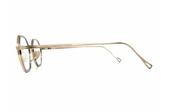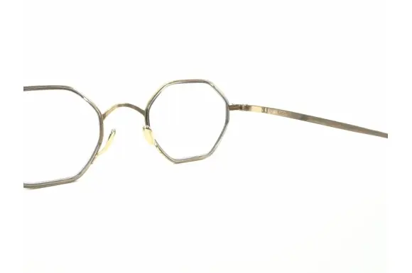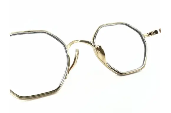 Kame ManNen(カメマンネン)のKMN-1232です。クラシカルな眼鏡をベースに、現代の技術を駆使したオクタゴン型(八角形)メタルフレーム。チタン製で軽く、かけ心地も快適です。インナーリムもチタンを合わせたフルメタル仕様です。フロントリムは厚みがある分レンズの厚みが目立ちにくい構造となっています。シンプルながら、個性的な一本です。