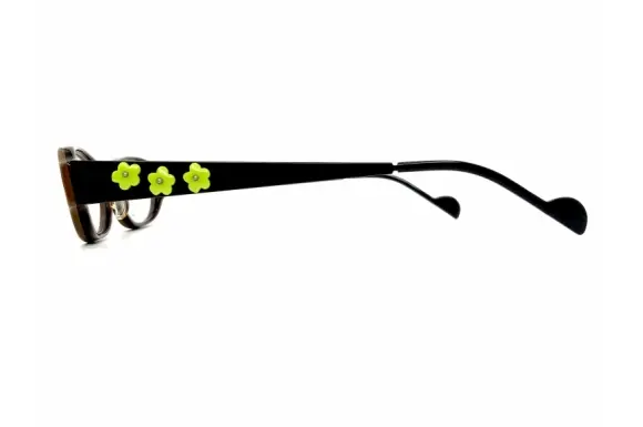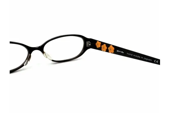ヨーロッパ製の"楽しい眼鏡"をイメージし、日本人(アジア人)の肌の色に合う色やトーン、そして骨格に合うサイジングの眼鏡を自分逹の手で生み出す。「めがねで美・観・楽・遊」をコンセプトにするKAMUROのhoaです。テンプルにあしらわれたお花モチーフのデザインがPRETTYなコンビネーションフレームです。