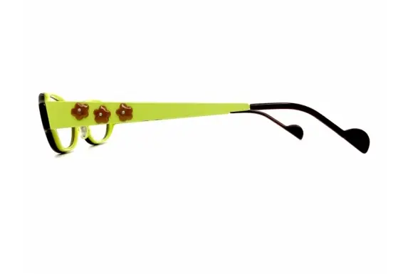 ヨーロッパ製の"楽しい眼鏡"をイメージし、日本人(アジア人)の肌の色に合う色やトーン、そして骨格に合うサイジングの眼鏡を自分逹の手で生み出す。「めがねで美・観・楽・遊」をコンセプトにするKAMUROのhoaです。テンプルにあしらわれたお花モチーフのデザインがPRETTYなコンビネーションフレームです。
