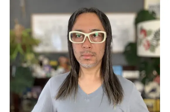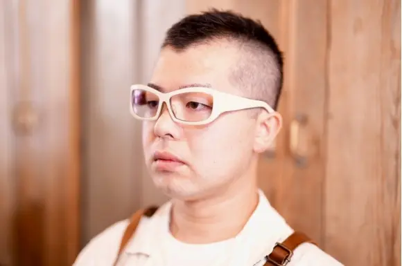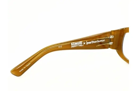 作りたい物をつくり、道具ではない眼鏡、馬鹿でエロティックでアナーキーな装飾品を目指してクリエイトされ"人間以下"をブランド名とするアイウェアブランド、レスザンヒューマン(HOULANCHENG)とインディーズレーベル、KEMURI PRODUCTIONS(ケムリプロダクション)とのコラボレーションフレームHOULANCHENGです。 顔を覆うようなカーブを描いたラップアラウンドタイプのビッグセル。両者のコラボモデルらしい尖ったスタイルの一本。カラーレンズを入れてもカッコイイと思います。