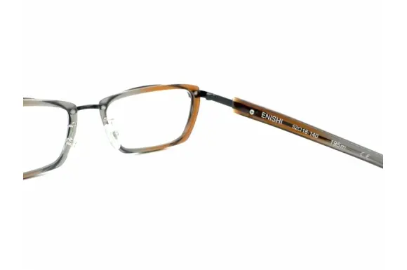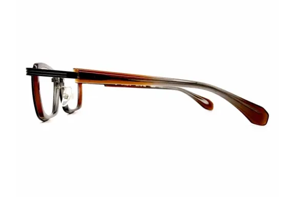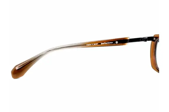 "人間以下"をブランド名とするアイウェアブランド、レスザンヒューマン。作りたい物をつくり、道具ではない眼鏡、馬鹿でエロティックでアナーキーな装飾品を目指してクリエイトされます。モデル名はENISHI。レスのハイテクノロジーを駆使し、チタンとアセテートを組みあわせ構築した、立体感溢れるコンビネーションフレームです。メタルリム内側にプラスチックフードを内包させたスタイルが抜群にCOOLな一本です。