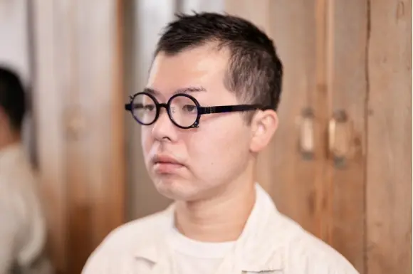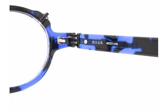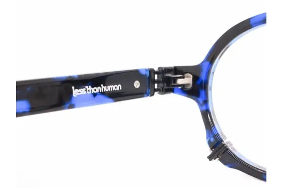 "人間以下"をブランド名とするアイウェアブランド、レスザンヒューマン。作りたい物をつくり、道具ではない眼鏡、馬鹿でエロティックでアナーキーな装飾品を目指してクリエイトされます。モデル名は則天去私(そくてんきょし)。自分の欲望や私心を捨て、天(自然や宇宙の摂理)に従うことを指します。夏目漱石が晩年に提唱した思想で、人間の利己的な感情を超えて、大きな自然の流れに身を委ねる生き方を説いたものです。ただでは済まないレスのラウンドフレーム。フロントもサイドも金具が効いていますね、アシンメトリーデザイン。抜群にカッコイイ一本です。