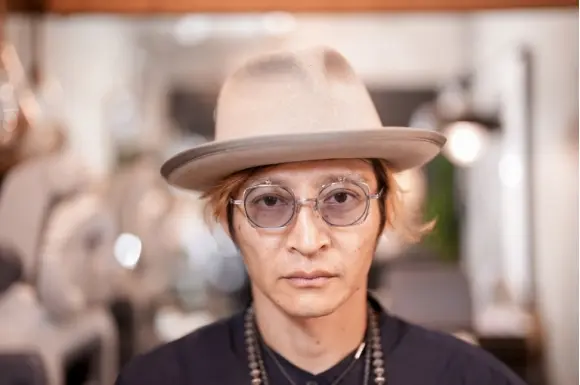 "人間以下"をブランド名とするアイウェアブランド、レスザンヒューマン。作りたい物をつくり、道具ではない眼鏡、馬鹿でエロティックでアナーキーな装飾品を目指してクリエイトされます。モデル名はGIG。複式の跳ね上げスタイルで、レスならではの個性的なデザインが効きまくったメタルフレーム。前後で、□○の異なる玉形を合わせたデザインが特徴的です。