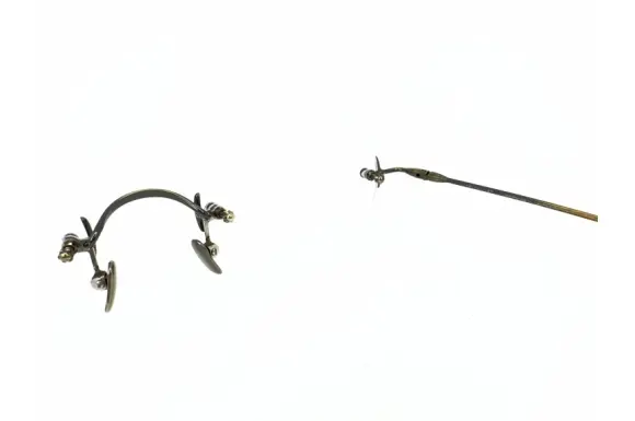 こちらのフレームはレンズに直接穴を開けて固定するタイプのフレームです。