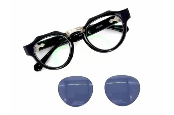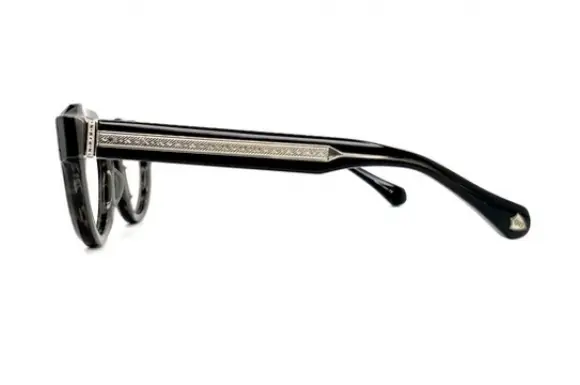 建築とファッションの融合を表現した最初のデザイナー、松田光弘のアイウェアブランドMATSUDA EYEWEARのM1037です。“東京ファッションウィーク”や“ニコル”の創設者で国際的にも評価の高い日本人デザイナーによる、芸術作品のようなアイウェア。なんと最大10mm厚の超極太で、丸みを帯びたカッティングデザインが、ぽってり独特なクラウンパント型コンビネーションフレーム。各所に施された彫金などの意匠は素晴らしく、高級感のある一本。とことん作り込まれています。