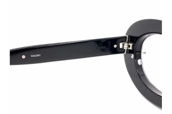 10604Hは、松田光弘が手がけたオリジナルデザイン(1995年)をベースに、現代的な解釈でアップデートされた一本。オーバルシェイプのセルフレームに、立体的なメタルフードを内包する構造は、建築的発想とファッション性が高次元で融合した、MATSUDAを象徴するデザインです。正面からの強い造形美だけでなく、角度によって表情が変わる奥行きのある佇まいも、このモデルならではの魅力かと思います。