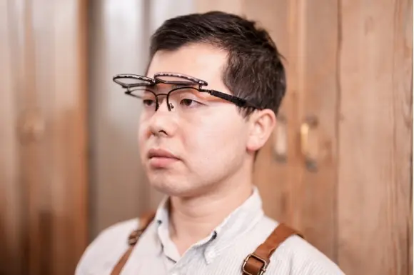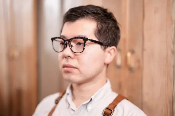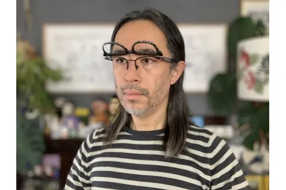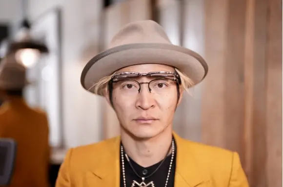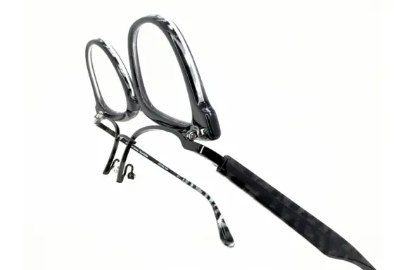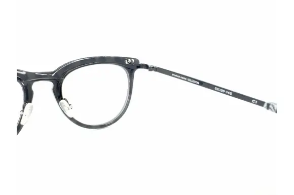 METRONOMEのデザインテイストはそのまま、より「共鳴」しやすくするために生まれたMETRONOMEの新ライン「Resonance」と、“LOVE&JOKE”をコンセプトに展開しているブランドブランド、ALDIES(アールディーズ)のコラボレーションモデル、ILLUSIONです。なんと右枠がボストンシェイプで、左枠がウェリントンシェイプの左右非対称(アシンメトリー)デザインがユニークな、単式跳ね上げフレームです。テンプルまでメタルテンプルとプラスチックテンプルの非対称。生産は中国ですが、作りもデザインも素晴らしく、挑戦的な一本です。
