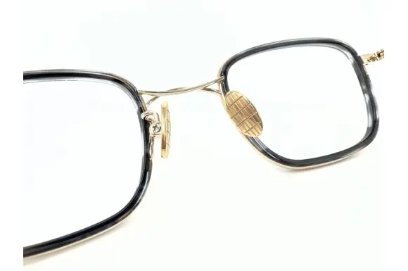 デザイナーの高根氏による「憧れを生み出す物」がコンセプトのアイウェアブランドMr.Gentleman EYEWEAR(ミスタージェントルマンアイウェア)。デザイナーが幼少期に憧れを抱いた俳優やミュージシャンのアイウェアファッションがルーツなのだとか。モデル名はPATRICKです。「ツインブリッジ」と名づけられた新しいブリッジ構造を採用したシリーズで、 一見交わっている様で交わっていない二つの異なるパーツを組合せ、一つのブリッジデザインを完成させています。メタルブリッジ内側からセル枠をはめ込んだクラシカルなスタイルのスクエア型コンビネーションフレームです。