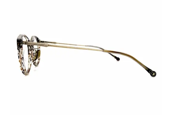 福井県鯖江発、内藤眼鏡の職人の手作業によって製造される、内藤熊八作(ないとう くまはちさく)。クラシカルなデザインをベースに、チタンやセルロイドを用いた高品質な眼鏡は国内外で高い評価を受けています。彫金に日本的なモチーフを取り入れるなど、模様にもこだわったブランド。モデル、N-053はクラシカルでオーセンティックなボストン型のコンビネーションフレーム。美しく上品な印象。メタルパーツはチタンを採用しています。