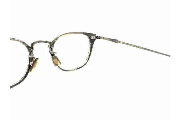 福井県鯖江発、内藤眼鏡の職人の手作業によって製造される、内藤熊八作(ないとう くまはちさく)。クラシカルなデザインをベースに、チタンやセルロイドを用いた高品質な眼鏡は国内外で高い評価を受けています。彫金に日本的なモチーフを取り入れるなど、模様にもこだわったブランド。モデル、N-052はクラシカルでオーセンティックなコンビネーションフレーム。美しく上品な印象。メタルパーツはチタンを採用しています。