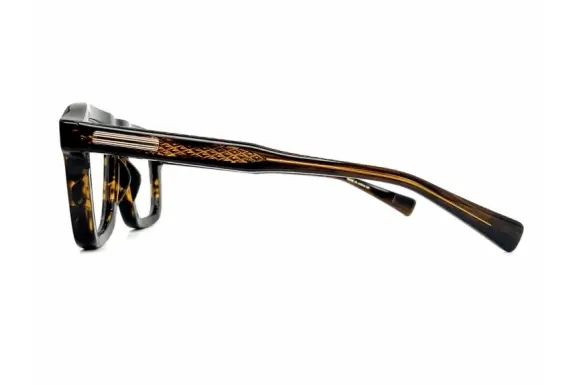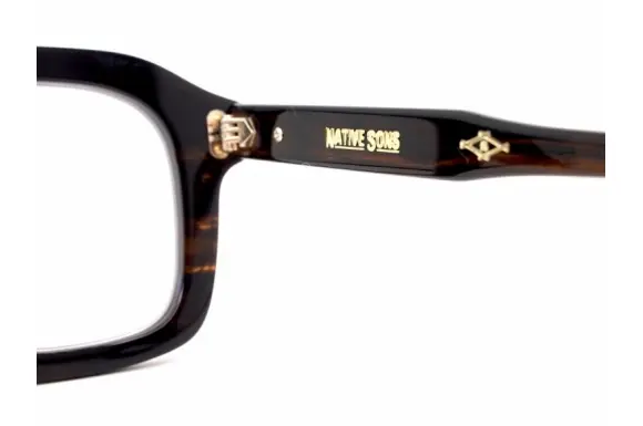the LIGHT Co.Ltdのデザイナー、タミー・オガラの世界観が表現されるオリジナルアイウェア、Native Sons(ネイティブサンズ) 7㎜コレクションよりGleeson PL-077ACです。7㎜コレクションは今のメガネ業界でデザインとしてトレンドが単極化している中で差別化出来るコレクションとして展開しており、7㎜生地が持つ存在感と強さは厚みのある生地を彫刻の様にカットする事で多面的な存在感を放ち他には無いデザイン性を表現してくれます。またすべてのモデルを手書きでデザインを起こしており、タミー氏の熱意がそのまま表現されたモデルです。左右非対称に打ち込まれた六角形のリベット、テンプルにはラグジュアリー感を表現するビューティーマーク(飾り鋲)が採用されています。がっしりとした黒縁が、とってもカッコイイですね。カラーレンズを入れても抜群にCOOLな一本です。