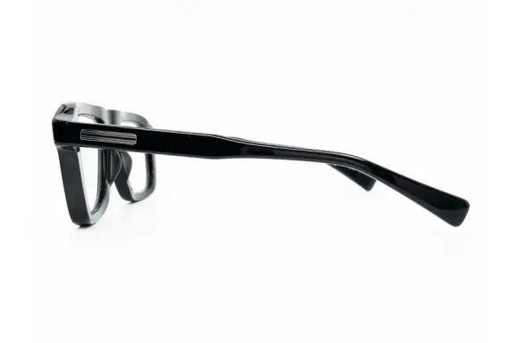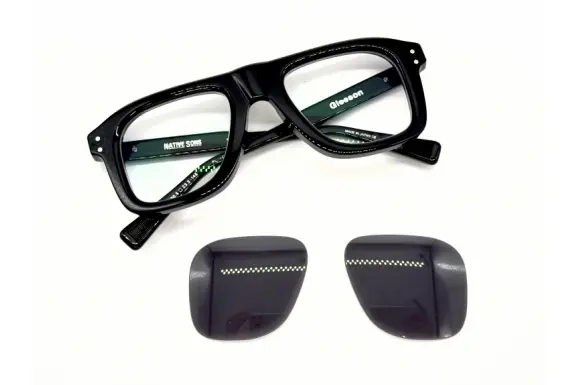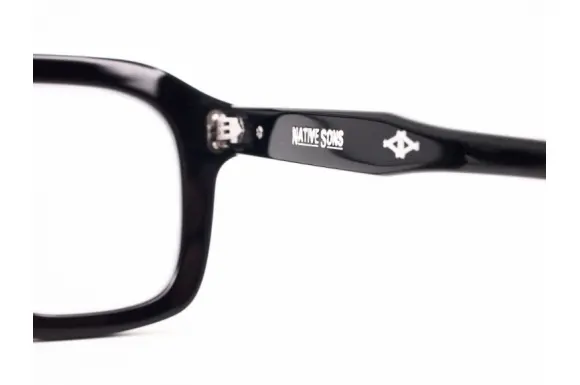 the LIGHT Co.Ltdのデザイナー、タミー・オガラの世界観が表現されるオリジナルアイウェア、Native Sons(ネイティブサンズ) 7㎜コレクションよりGleeson PL-077ACです。7㎜コレクションは今のメガネ業界でデザインとしてトレンドが単極化している中で差別化出来るコレクションとして展開しており、7㎜生地が持つ存在感と強さは厚みのある生地を彫刻の様にカットする事で多面的な存在感を放ち他には無いデザイン性を表現してくれます。またすべてのモデルを手書きでデザインを起こしており、タミー氏の熱意がそのまま表現されたモデルです。左右非対称に打ち込まれた六角形のリベット、テンプルにはラグジュアリー感を表現するビューティーマーク(飾り鋲)が採用されています。がっしりとした黒縁が、とってもカッコイイですね。カラーレンズを入れても抜群にCOOLな一本です。