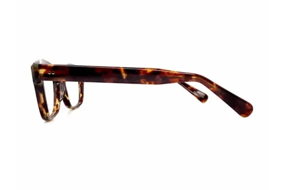 日本、世界でもトップクラスのメガネ産地福井県鯖江市のメガネ職人によって丁寧に製造されたアイウェア、Oh My Glasses TOKYOの一整 01です。セルロイド製メガネのパイオニア、佐々木末吉の直系4代目にあたる佐々木一整による一本。クラシカルでオーセンティックなウェリントン型のセルフレームです。もちろんセルロイド製で、その質感、艶、発色は素晴らしいです。10金鋲(K10)を採用した高級感のある仕上がりとなっております。