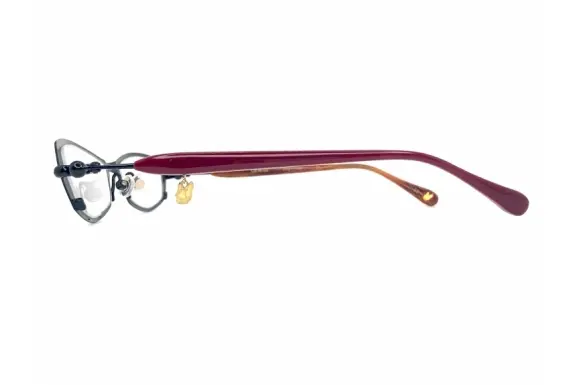 ボストンテリアのヒッピーをモチーフに、スタイリッシュでありながら愛らしく、 そして機能性を重視した、都会的な女性たちへ「明日をちょっと楽しくする」アイテムをつくる、表参道発のファッションブランド、Crystal Ball(クリスタルボール)のアイウェア、CB-M-03です。左テンプルにぶら下がるヒッピーちゃんがCUTEなコンビネーションフレームです。