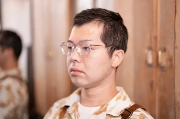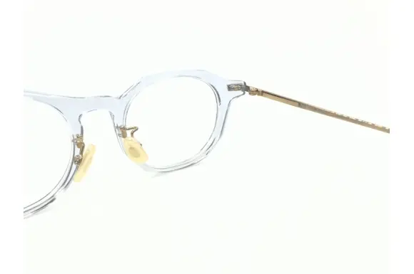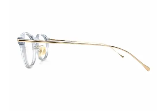 美しい生地づかいに、個性的なデザインが特徴的なブランドPADMA IMAGEのGYNAND(ガイナンド)です。パドマとはサンスクリット語で蓮の花。 「蓮は泥より出でて、泥に染まらず」そうでありたいという思いから名付けられています。フロントにセルロイド、テンプルにチタンを採用したコンビネーションフレームです。雌雄モザイクをモチーフにした、左右非対称(アシンメトリー)デザインが特徴的なモデルで、左をウェリントン型に、右をオクタゴン型(八角形)に線を組み合わせることで、雌雄モザイクが表現されています。ブランドテーマの「程よい違和感」をライトなバランスで愉しめる一本です。