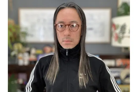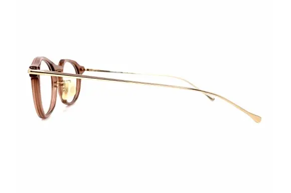 美しい生地づかいに、個性的なデザインが特徴的なブランドPADMA IMAGEのGYNAND(ガイナンド)です。パドマとはサンスクリット語で蓮の花。 「蓮は泥より出でて、泥に染まらず」そうでありたいという思いから名付けられています。フロントにセルロイド、テンプルにチタンを採用したコンビネーションフレームです。雌雄モザイクをモチーフにした、左右非対称(アシンメトリー)デザインが特徴的なモデルで、左をウェリントン型に、右をオクタゴン型(八角形)に線を組み合わせることで、雌雄モザイクが表現されています。ブランドテーマの「程よい違和感」をライトなバランスで愉しめる一本です。