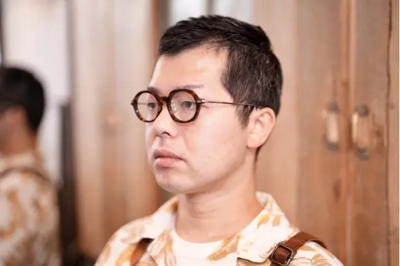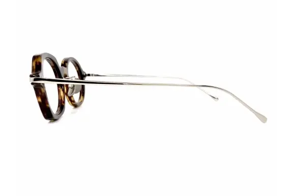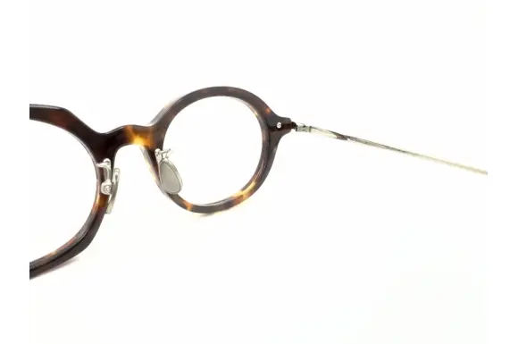美しい生地づかいに、個性的なデザインが特徴的なブランドPADMA IMAGEのGIBBON(ギボン)です。パドマとはサンスクリット語で蓮の花。 「蓮は泥より出でて、泥に染まらず」そうでありたいという思いから名付けられています。また、〇△□をテーマにしたギボンは江戸時代の墨画「〇△□図」の作者、仙厓義梵(せんがい ぎぼん)より引用されています。「無垢」をテーマにしたアシンメトリーコレクションであり、。6mm厚の無骨なアセテート素材に、無垢のチタンを組み合わせたコンビネーションフレームです。左右非対称(アシンメトリー)デザインが特徴的。ブランドテーマの「程よい違和感」をライトなバランスで愉しめる一本です。