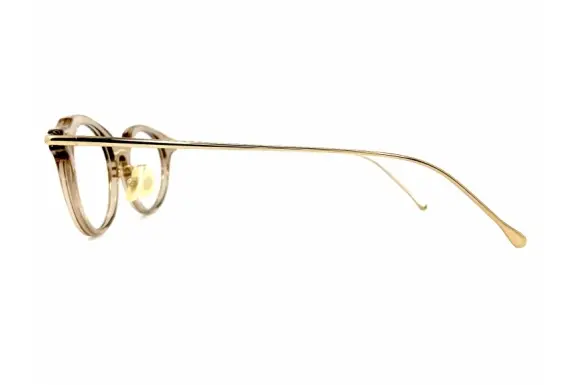 美しい生地づかいに、個性的なデザインが特徴的なブランドPADMA IMAGEのCARACSA(カラクサ)です。パドマとはサンスクリット語で蓮の花。 「蓮は泥より出でて、泥に染まらず」そうでありたいという思いから名付けられています。フロントにセルロイド、テンプルにチタンを採用したコンビネーションフレームです。唐草模様をモチーフにした、左右非対称(アシンメトリー)デザインが特徴的なモデルで、各所に異なる曲線を組み合わせることで、つるが絡み合う様子が表現されています。ブランドテーマの「程よい違和感」をライトなバランスで愉しめる一本です。