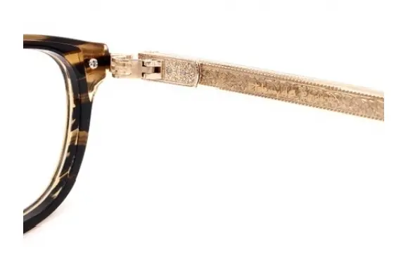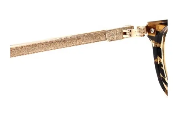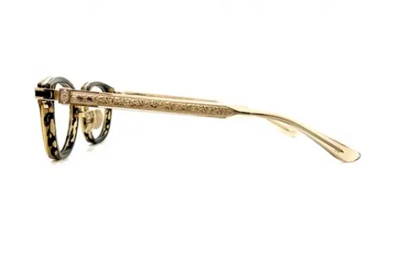 トレミー48のEmperorシリーズより、E-101です。最先端のテクノロジーと個性的なデザインが織り成す、「mechanics of passion(情熱の仕掛け)」 から生まれたモダンでお洒落な、チタン×アセテートのコンビネーションフレーム。テンプルは1730年代に流行した、植物の葉のような複雑な曲線を用いたロカイユ装飾をインスパイアし、優雅で繊細なロココ模様を地彫り彫金で創り出しています。トレミー48のアイコン、鎧のオニキス七宝から、合口部分の新機構の一体鋳造型ヒンジが、一段と高級感を演出しています。『エンペラー(皇帝)』の名にふさわしいデザイン。高級感溢れる一本です。