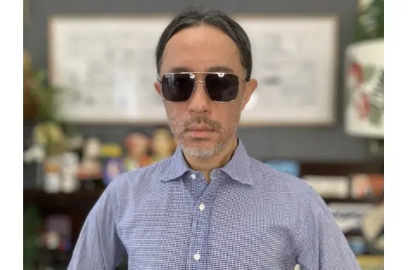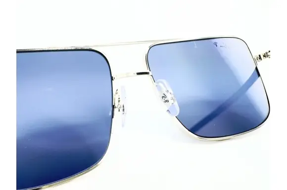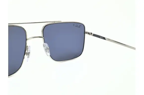 レイバンのサングラスRB3758です。ダブルブリッジ仕様のスクエア型メタルフレームです。純正レンズには、レイバンのシグネチャーロゴがあしらわれていて、ブルー系の偏光レンズ仕様となっています。レイバンらしいセクシー&ワイルドな、まさしく王道な一本です。