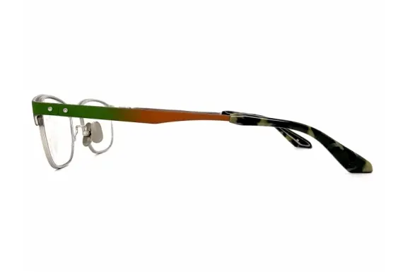形状はスタンダードな細身のサーモント。しかし、七宝塗りでグラデーションという、提案する方も実行する方もどうかしているカラーリングが見事な変態眼鏡です。(べた褒めのつもり)