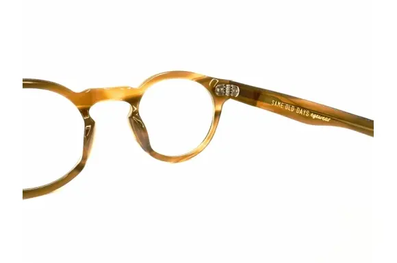 コンセプトは「日常に溶け込む、特別な一本」。タイ、バンコクのヴィンテージ眼鏡店、「Same Old Days」が手がける、同名オリジナルブランドのVintage9570です。クラシカルでオーセンティックなボストン型セルフレームです。キーホールブリッジや、ダブルダイヤ型のカシメ鋲も効いています。ヴィンテージの美学と現代的な感性を融合させた特別なアイウェアです。上質なアセテートを用いた、美しい一本は丁寧な職人技が光ります。薄いカラーレンズを入れても素敵だと思います。