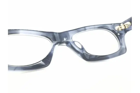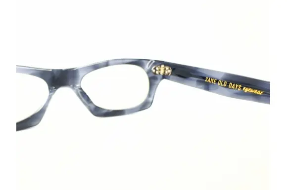 コンセプトは「日常に溶け込む、特別な一本」。タイ、バンコクのヴィンテージ眼鏡店、「Same Old Days」が手がける、同名オリジナルブランドのVintage9638です。太く、厚みがあって変則的なデザインがかなり個性的で独特な雰囲気を持ったセルフレーム。3点カシメ鋲、カッティングデザインも効いています。ヴィンテージの美学と現代的な感性を融合させた特別なアイウェアです。上質なアセテートを用いた、美しい一本は丁寧な職人技が光ります。薄いカラーレンズを入れても素敵だと思います。