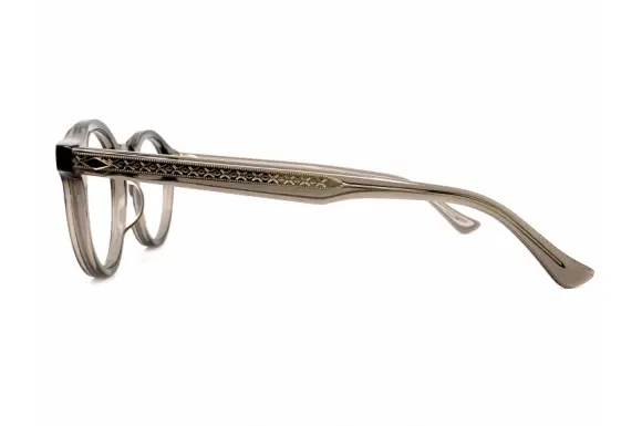 50年代~90年代のアメリカで愛された、"ジョージ・E・コッボ"による、NY発のアイウェアブランドで、古き良き時代のデザインがヴィンテージファンに人気のSelecta(セレクタ)のボストンモデルMAVERICK 87-9017です。今では入手が難しいオリジナルデザインを、日本人向けのゴールデンサイズに調整し、現代風にリメイク。ダイヤ型のカシメ鋲や、彫金模様が刻まれた芯金、質感の高い5枚丁番仕様など、高級感のある拘りのディテールがポイントとなっています。