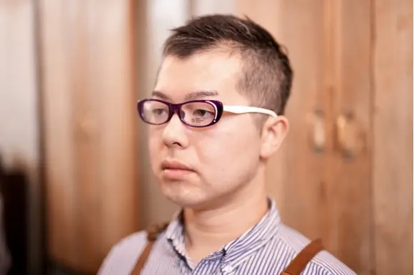 福井県鯖江市に工房を置く、丹下貴礼氏のオリジナルブランド「studio skyrocket 」よりLOOP です。一つ一つのフレームをほぼ一人で作り上げる、正に職人技のセルフレーム。左側にはサイドの色と響き合うような白い七宝のラインが入っており、豊かな表情を生んでいます。アシンメトリーなデザインが、遊び心を感じさせるスタジオスカイロケットらしい一本です。