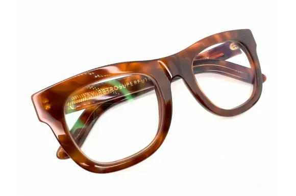レトロスーパーフューチャー (RETROSUPERFUTURE)は、イタリアのファッション、ミュージック誌「PIG MAGAZINE」の発行人だった、ダニエルとシモンの2人によって創設された、イタリア、ミラノ発のアイウェアブランド。モデル105は、クラシカルでオーセンティック、王道のウェリントン型セルフレーム。個性的で、生地づかいも素敵、ファッショナブルな一本です。カラーレンズを入れるのもおすすめです。