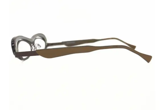 左右非対称や幾何学的なフォルム、鮮やかな色使いなど、一目で theo と分かる斬新なデザインが特徴です。しかし単なる奇抜さではなく、掛けてみると不思議と顔になじみ、意外なほど自然に収まる。その絶妙なバランス感覚こそが theo の魅力で、日本でも「アヴァンギャルドなのに掛けやすいメガネ」として多くの支持を集めています。