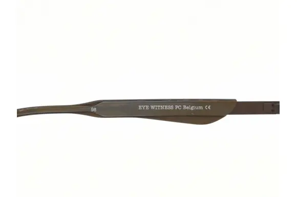 テオのeye-witness(目撃者の意)シリーズよりPCです。このシリーズは、すべて左右非対称のデザイン。「完璧なものは時にツマラナイものだ。人の顔は基本的に左右非対称、ならば眼鏡も左右対称でなくてもよいではないか。」というデザイナー、 パトリック・フート氏の哲学によって生まれました。変則デザインのピュアチタン製シートメタルフレームのトップラインに、キレイなアセテートがあしらわれたアイウェットらしいコンビフレームです。テオよりもさらに個性的で、遊び心溢れるフレームです。