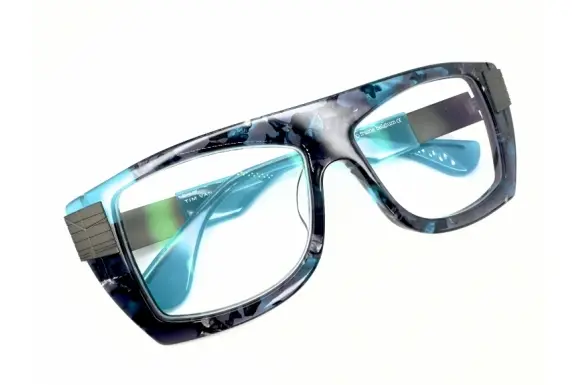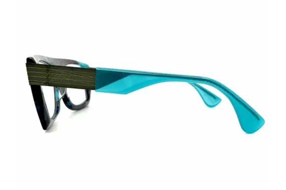 左右非対称や幾何学的なフォルム、鮮やかな色使いなど、一目で theo と分かる斬新なデザインが特徴です。しかし単なる奇抜さではなく、掛けてみると不思議と顔になじみ、意外なほど自然に収まる。その絶妙なバランス感覚こそが theo の魅力で、日本でも「アヴァンギャルドなのに掛けやすいメガネ」として多くの支持を集めています。