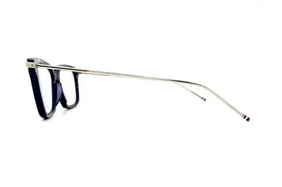 THOM BOROWNEアイウェアのTB-701です。アメリカントラッドをモダンに進化させたスタイルが特徴的。クラシカルかつ上品なコンビネーションフレームです。繊細で上品なトムのアイウェアは格上の定番。メタルテンプルを用い、美しく雰囲気のある仕上がり。トリコロールのテンプルディップ、ストライプ柄のノーズパッドが絶妙なアクセントです。トラディショナルなアイテムにトムらしいひねりを加えた、無二な世界観が素晴らしい一本です。カラーはネイビー×シルバーです。