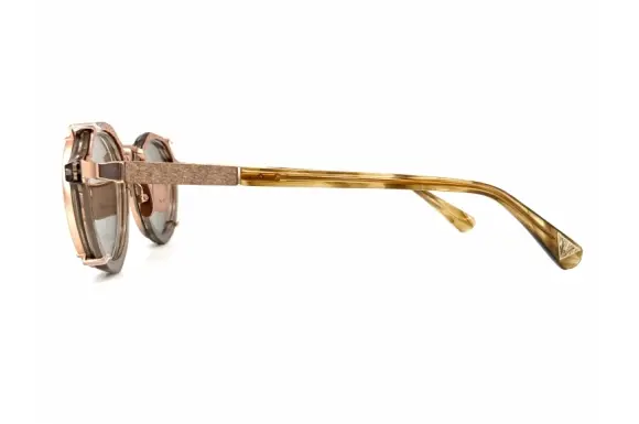 日本の白谷雲水峡の自然景色にインスピレーションを得た、香港発のブランド、UNSUIKYO(ウンスイキョウ)のM.SNOWFLAKEです。豊富な質感のある原石や、高品質な木材など、天然の原材料を用い、現代と原始美が結合したオリジナルのアイウェア。日本の職人によって、一つ一つ手作りされ、形となっている、高品質のMADE IN JAPANフレームです。自然を愛し、原材料は再生可能なものを選んでいます。独特な石模様、木目、輪郭、質感が、落ち着いたナチュラルな雰囲気を醸す、UNSUIKYOのフレームを是非。クリップオンサングラスが付属いたしますので、より多くの機会で活躍してくれる、COOLで、ファッショナブルな一本です。