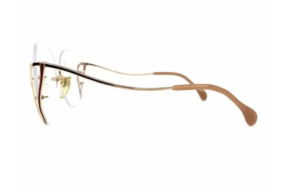 1846年創業、ドイツが誇る光学機器メーカーCarl Zeiss(カール・ツァイス)による独特な雰囲気を持つ、西ドイツ製のヴィンテージフレーム6621です。細く上品なラインや、デザインが、レトロ&セクシーなバタフライシェイプのスリーポイント(リムレス・縁なし)メタルフレームです。ブリッジ脇のビスにはストーンがセットされています。