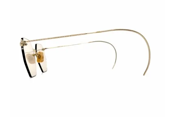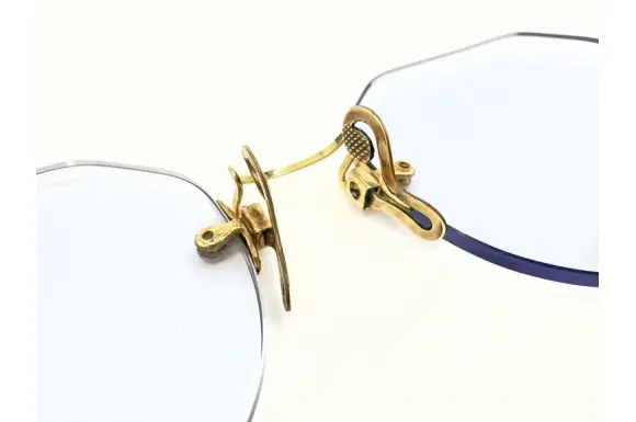 素材には、メタルの表面に分厚い金の層を圧着させた「12K金張り」を採用。現代のメッキとは一線を画す耐久性を持ち、80年以上の時を経た今も、そしてこれからも「一生もの」として輝き続けます。ブリッジやテンプルに刻まれた繊細な彫金は熟練職人の手仕事によるもので、大量生産品にはない温かみと知的な品格を演出します。