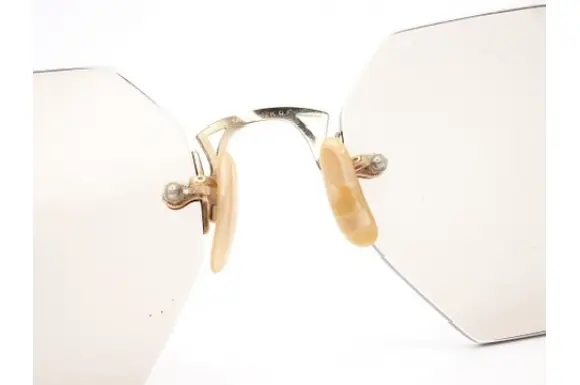 1930年代から40年代初頭のアメリカで、眼鏡が「芸術品」として黄金期を迎えた時代の希少な逸品。本物のヴィンテージだけが持つ圧倒的な存在感を放つ、12金張り(12kGF)のオクタゴン型リムレスフレームです。
