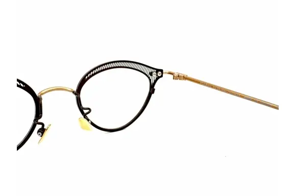 “七色のアイウェア”がコンセプトで、アイウェアで人自身の“色”が変わるという考えのもと“メガネをかけるすべての人がご自身の変化を楽しみ、新しい発見にトライしていくことを想いながらデザイン、そしてプロダクトするアイウェアブランドVioRou(ヴィオルー)のNoriko-2です。フォックス型(キャットアイ)の個性的なデザインに、色使いがユニーク&PRETTYなフルメタル(チタン)のフレームです。