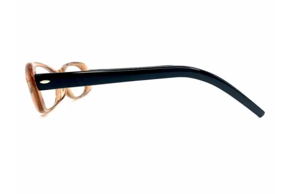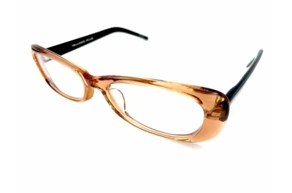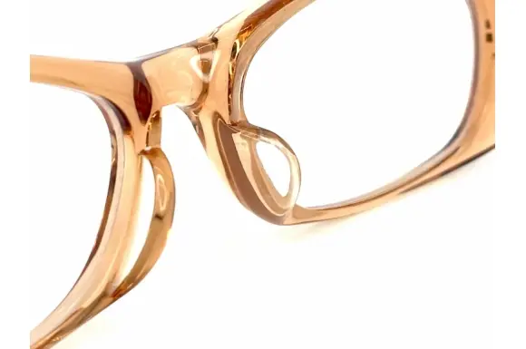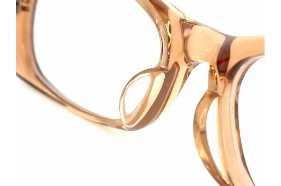 ヨーロッパで確固たる地位を築くドメスティックブランド、イエローズプラスのNO.538です。フロントサイドにボリュームを持たせ、ややワイドにデザインされた、存在感のあるスクエア型セルフレームです。ブラウン系クリア生地のフロントに、黒のテンプルを合わせたツートンカラー。船体的に丸みを持たせたカッティングデザインも特徴的です。