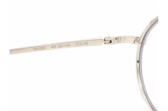 「創造と破壊」、「未来と過去」、「調和と不協和」相反する価値を持つアイウェアです。モデル、YA-020は、シン丸眼鏡。あるはずの場所に縁がないという少し変わったデザインの眼鏡です。本来あるべきものがないということで、そこに視線を集め、一見普通の丸眼鏡にちょうど良い個性と他では味わえない楽しみを楽しみをもたらしてくれています。
