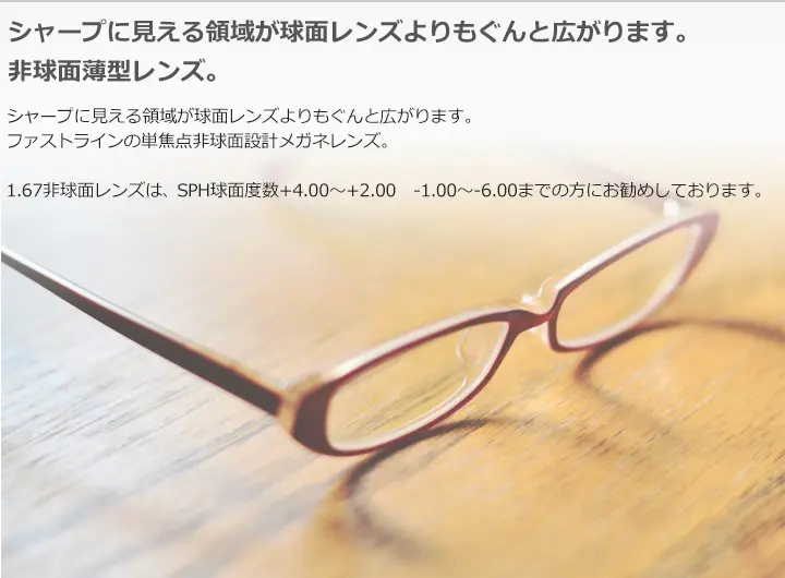ファストラインの単焦点非球面設計メガネレンズ。