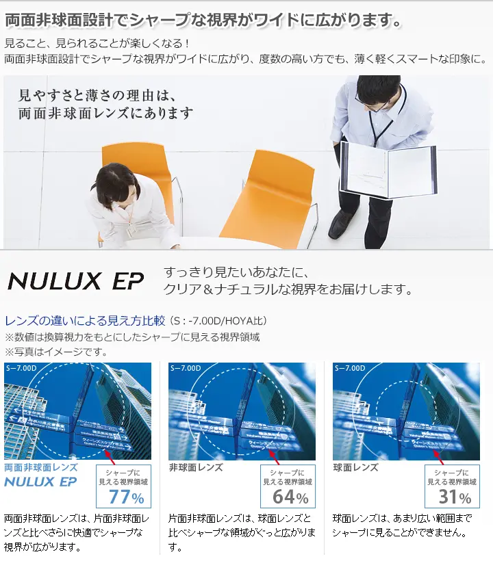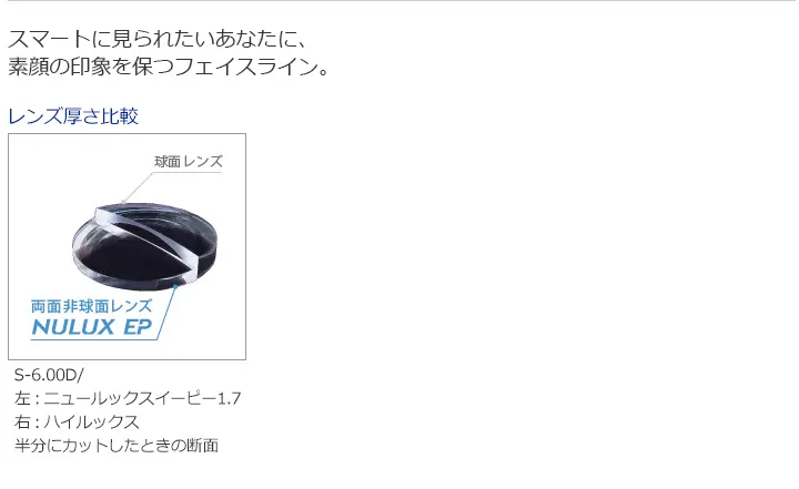 1.67両面非球面レンズ ニュールックスイーピー1.67(NULUX EP1.67)
